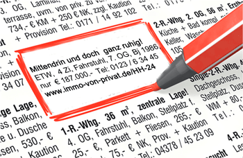 Trotz Internet. “Ohne Zeitung geht es nicht”. Das beweist allein schon das Übermaß an Makler-Inseraten in Presseerzeugnissen jedweder Art. Das ist auch nicht anders zu erwarten, denn nach wie vor informiert sich jeder Käufer immer auch über das Angebot in den Print-Medien. Die Kreiszeitung, das örtliche Amtsblatt, die überregionale Tageszeitung, sind neben dem Internet für die Entscheidungsfindung absolut unentbehrlich! Beim Immobilienkauf möchte man sicher gehen: Denn meist ist es eine Entscheidung für’s ganze Leben.